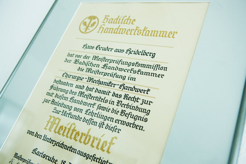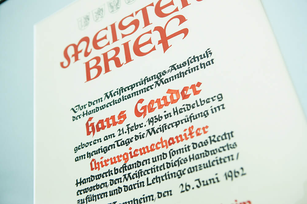 Hans Geuder senior wird Meister der Chirurgie-Mechanik und Ausbilder für Lehrlinge.