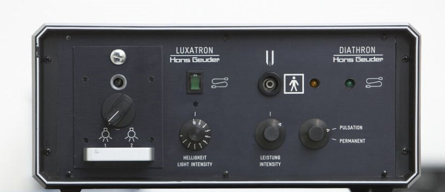 LUXATRON Lichtquelle und DIATHRON Diathermie-Gerät. Das LUXATRON dient der intraokularen Beleuchtung und wird somit der „Vorgänger“ der später entwickelten XENOTRON Geräte und jüngst der SOLEA®.