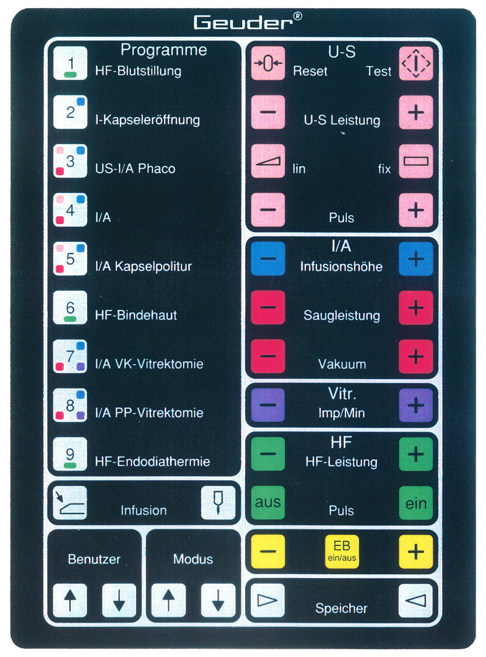 Mit dem MEMOTRON bringt Geuder sein erstes Gerätesystem für den Vorder- und Hinterabschnitt auf den Markt. Hierbei wurde das PHACO-ASPITRON® um eine Diathermie und Kaltlichteinheit erweitert. Das System ist damit auch für die Verwendung am hinteren Augenabschnitt geeignet. Die Kombination der drei Steuergeräte ist über ein Bus-System gekoppelt und mit der Rechnereinheit MEMOTRON verbunden, so dass Operateure erstmalig unterschiedliche Programmschritte in einer Datenbank ablegen und anschließend individuell wieder aufrufen und verwenden können.
