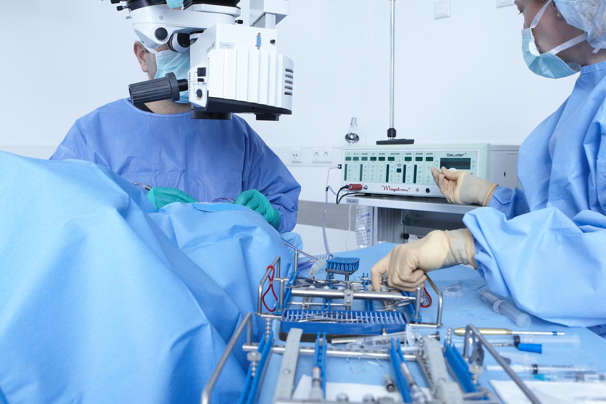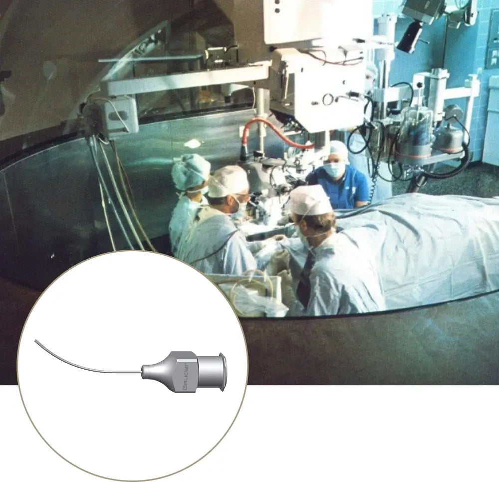 P. Cibis injiziert erstmalig Silikonöl in den Glaskörperraum zur Netzhaut-Tamponade. Für die kontrollierte Injektion der hoch-viskosen Flüssigkeiten bietet Geuder spezielle Spritzen und seit der Übernahme der Fluoron GmbH im Jahr 1996 auch eigene hochreine biokompatible Silikonöle.
