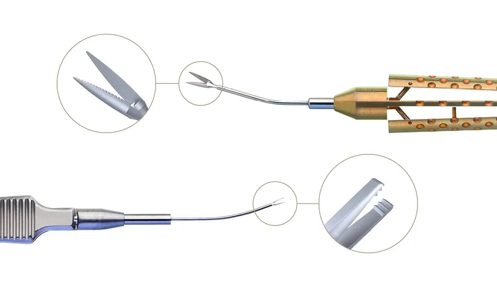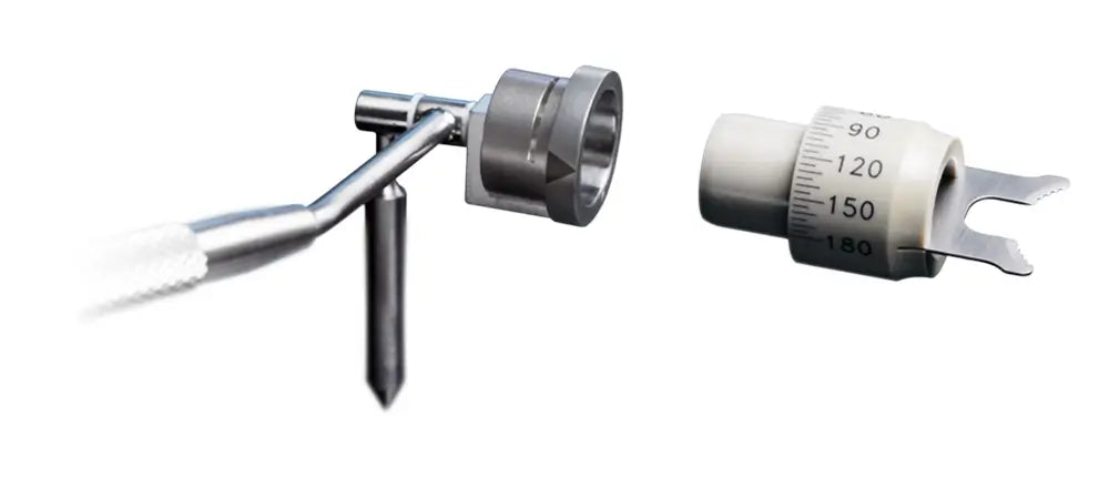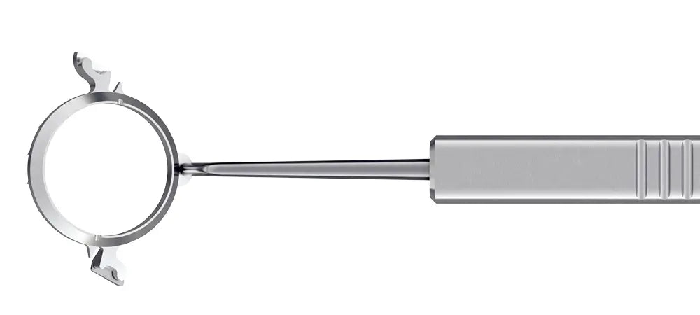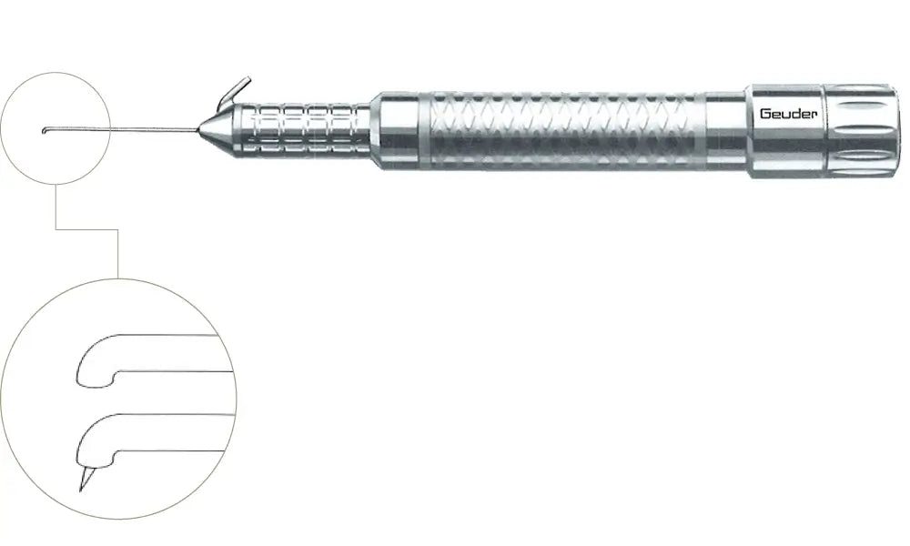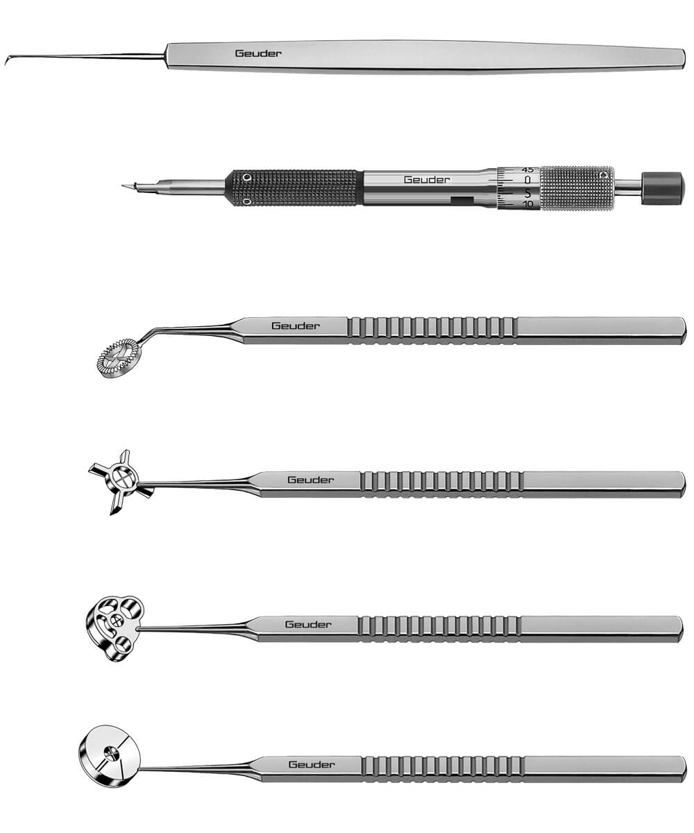 Mit dem Doppelnadel-Stabilisator und Fixierring hat Geuder in Zusammenarbeit mit S. Yamane (Japan) maßgeblich zum Erfolg seiner 2016 vorgestellten geflanschten intraskleralen IOL-Fixiertechnik beigetragen. Es ist ein Meisterstück der Präzision, das 27G oder 30G Nadeln über präzise Winkel und Einstichstellen in die Sklera führt, so dass die refraktive Position der IOL intraoperativ auf 0.25 D genau ausgerichtet werden kann.
