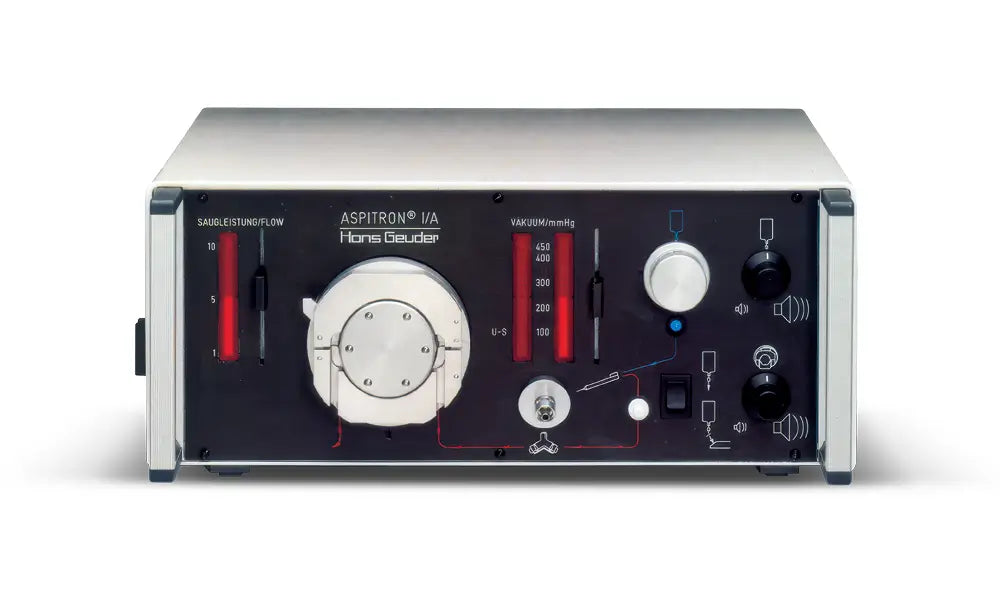 In Zusammenarbeit mit W. Papst (Hamburg) entwickelt Geuder mit dem ASPITRON® eine elektronisch gesteuerte Peristaltikpumpe zur extrakapsulären Katarakt-Extraktion (ECCE). Die Aspiration und Irrigation wird mit einem Fußschalter geregelt, wodurch Rindenreste kontrollierter entfernt werden können, als es mit den bis dahin eingesetzten Spritzen möglich war. Dies verringert das Risiko von Kapselrupturen.