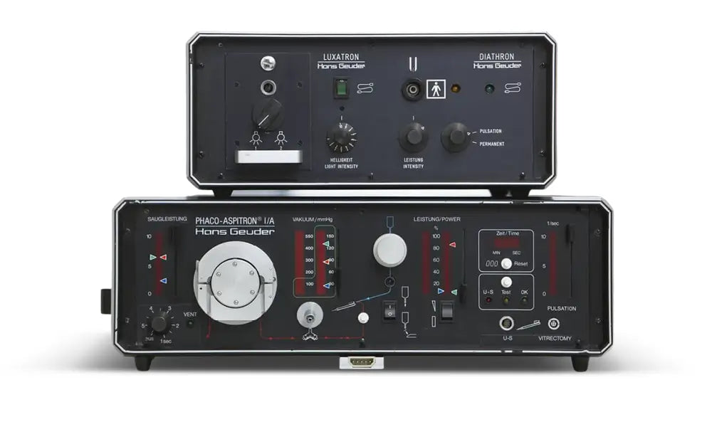 Das PHACO-ASPITRON® I/A ist eine Kombination der Einzelgeräte PHACO und ASPITRON. Dieses System konnte um das Diathermiegerät DIATHRON und die Lichtquelle LUXATRON (oder Kombination beider Geräte DIATHRON–LUXATRON erweitert werden. Geuder war einer der ersten Anbieter vollständiger modularer Gerätesysteme.