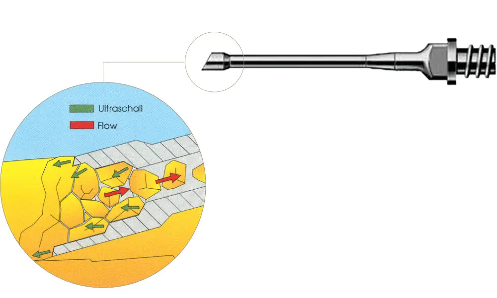 Das PHACO U-S ist ein 43 kHz Ultraschallgenerator mit integrierter Zuschaltung der Infusion und vakuum-gesteuerter Aspiration zum Anschluss an das PHACO-ASPITRON® I/A-System. Durch ein Testprogramm zur Überprüfung der Ultraschalleistung können Fehler wie z.B. eine nicht fest verschraubte Ultraschall-Spitze erkannt werden. Das Gerät hat einen wahlweise gepulsten Ultraschall von 1-10/sec und einen maximalen longitudinalen Hub von 85 μm sowie eine Digitalanzeige für die Ultraschallzeit oder das Produkt aus Zeit x Leistung. Die Ultraschallleistung ist über einen Fußschalter ein- und ausschaltbar und linear regulierbar. Der piezokeramische luftgekühlte Handgriff hat ein geringes Gewicht von nur 89 g.