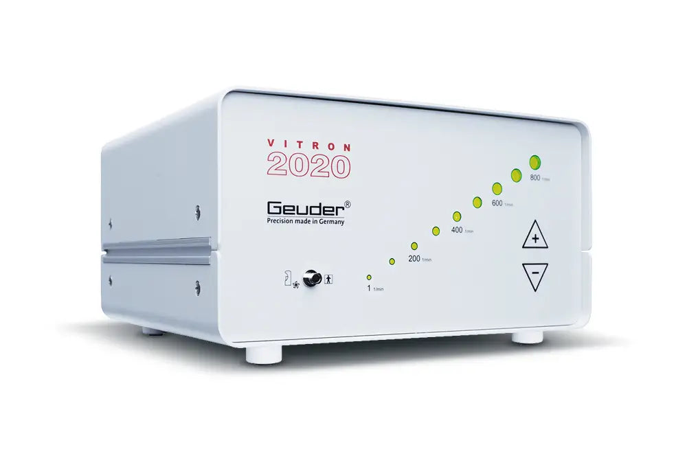 Geuder bringt den VITRON 2020 heraus, um die Initiative der WHO und IAPB zu unterstützen, welche sich zum Ziel gesetzt hat, die vermeidbare Blindheit bis zum Jahre 2020 zu beseitigen. Da fast 90% der vermeidbaren Sehbehinderungen in Entwicklungsländern auftreten, wurde dieses kostengünstige und zuverlässige Gerät speziell für diese Länder entwickelt. Es ist nur für Vorderkammer-Vitrektomien ohne integrierte Aspiration konzipiert. Hauptabnehmer und Verteiler in Schwellen- und Entwicklungsländern ist die Christoffel-Blindenmission (CBM), die von Geuder auch mit zahlreichen Instrumentenspenden unterstützt wird.