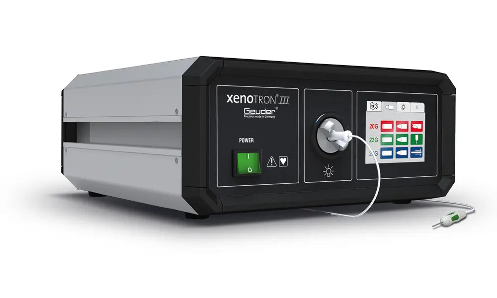 Die xenoTRON® III gehört mit 80 Lumen zu den leistungsstärksten Xenon-Lichtquellen. Durch den integrierten PhototoxGuard® ist die xenoTRON® III auch eine der sichersten.
