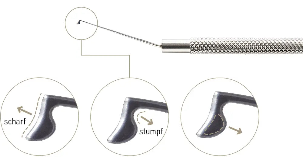 In weiterer Zusammenarbeit mit H.-R. Koch wird eine Kapsulorhexispinzette entwickelt, die nur noch eine Schnittbreite von 1.0 mm erfordert, anstatt der 3.0 mm Parazentesen für herkömmliche Kapsulorhexispinzetten.