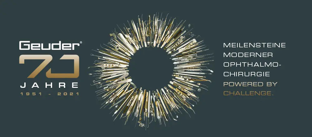 Geuder feiert sein 70-jähriges Firmenjubiläum. Seit die Firma Geuder 1951 von Hans Geuder senior gegründet wurde, haben viele bekannte Ophthalmologen wie R. Osher, T. Sato, H. R. Koch, J. Barraquer, H. Sautter, M.U. Dardenne, G. Mackensen, S. Fjodorov, C. Binkhorst, T. Neuhann, W. Sekundo, D. Wong, T. Kohnen und viele andere unsere Historie von mehr als 3.000 ophthalmo-chirurgischen Werkzeugen begleitet. Eine Vielzahl an Patenten in über 70 Ländern bestätigen unser intensives Engagement in Forschung und Entwicklung sowie unsere vorausschauende Philosophie.