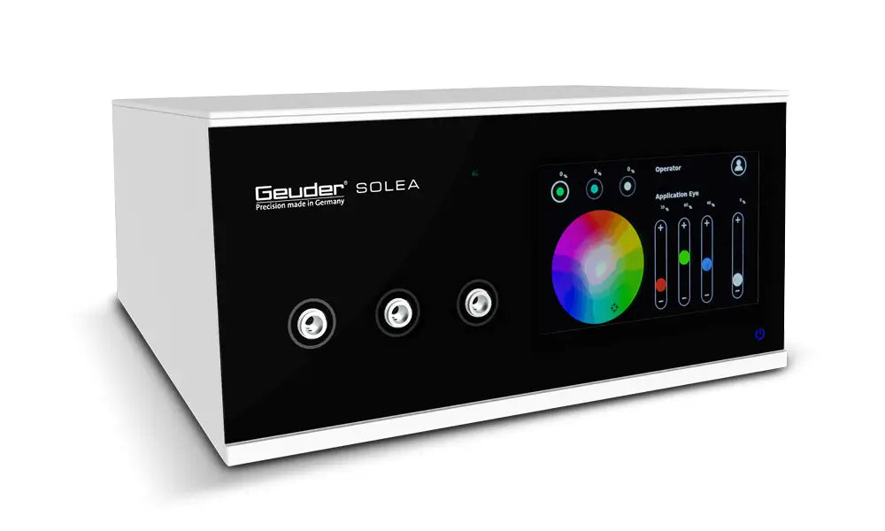 Mit der SOLEA® bringt Geuder die erste RGB LED Lichtquelle auf den ophthalmo-chirurgischen Markt. Die von den roten, grünen und blauen LEDs erzeugten 16,7 Mio. Farben erlauben völlig neue Einblicke in den hinteren Augenabschnitt.DMEK RAPID® Transportsystem bei der DGFG bestellt werden